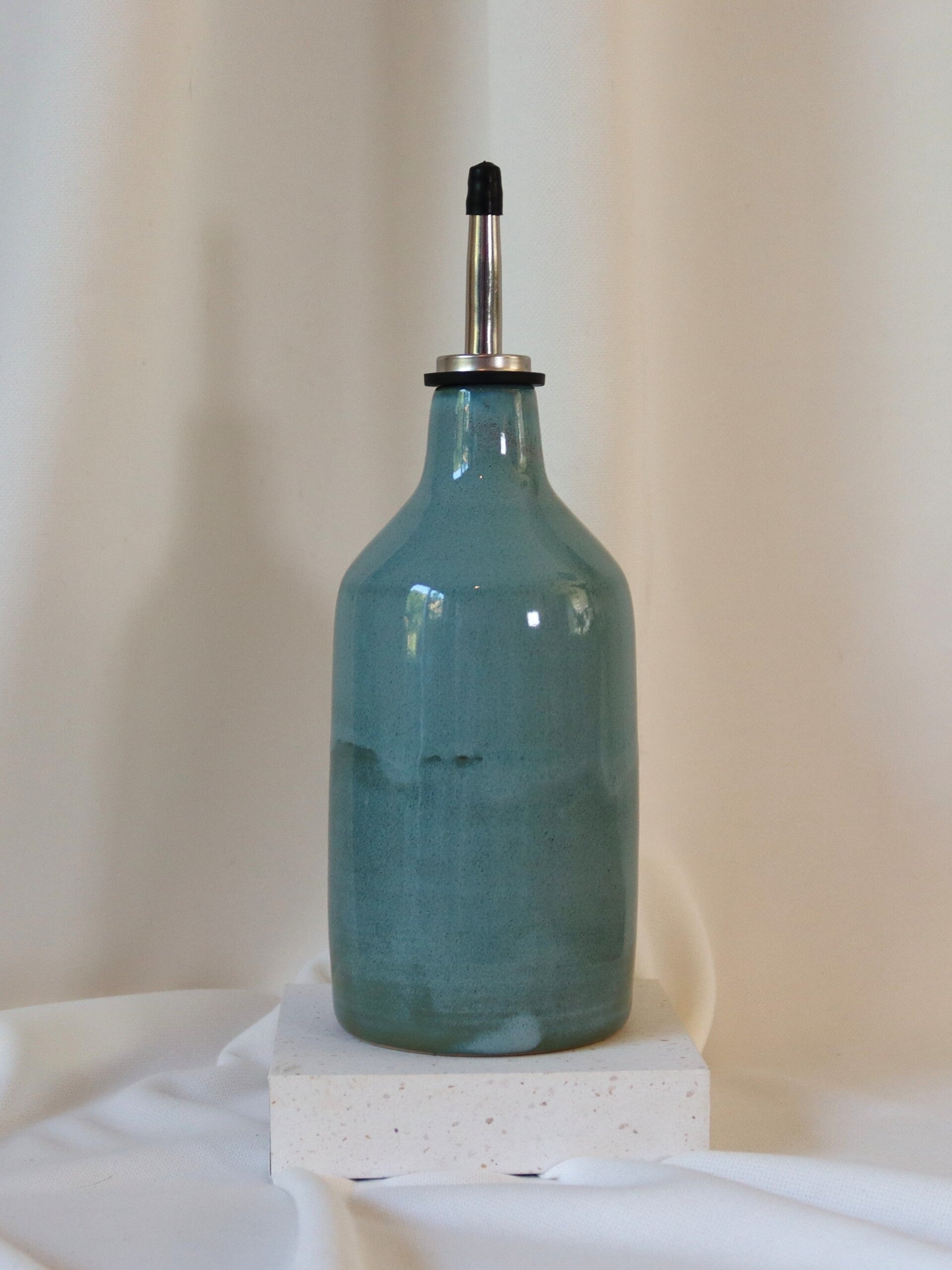 Deze keramieken oliefles schenkt soepel en ziet er ook nog eens prachtig uit. Perfect voor olijfolie of je favoriete dressing.
