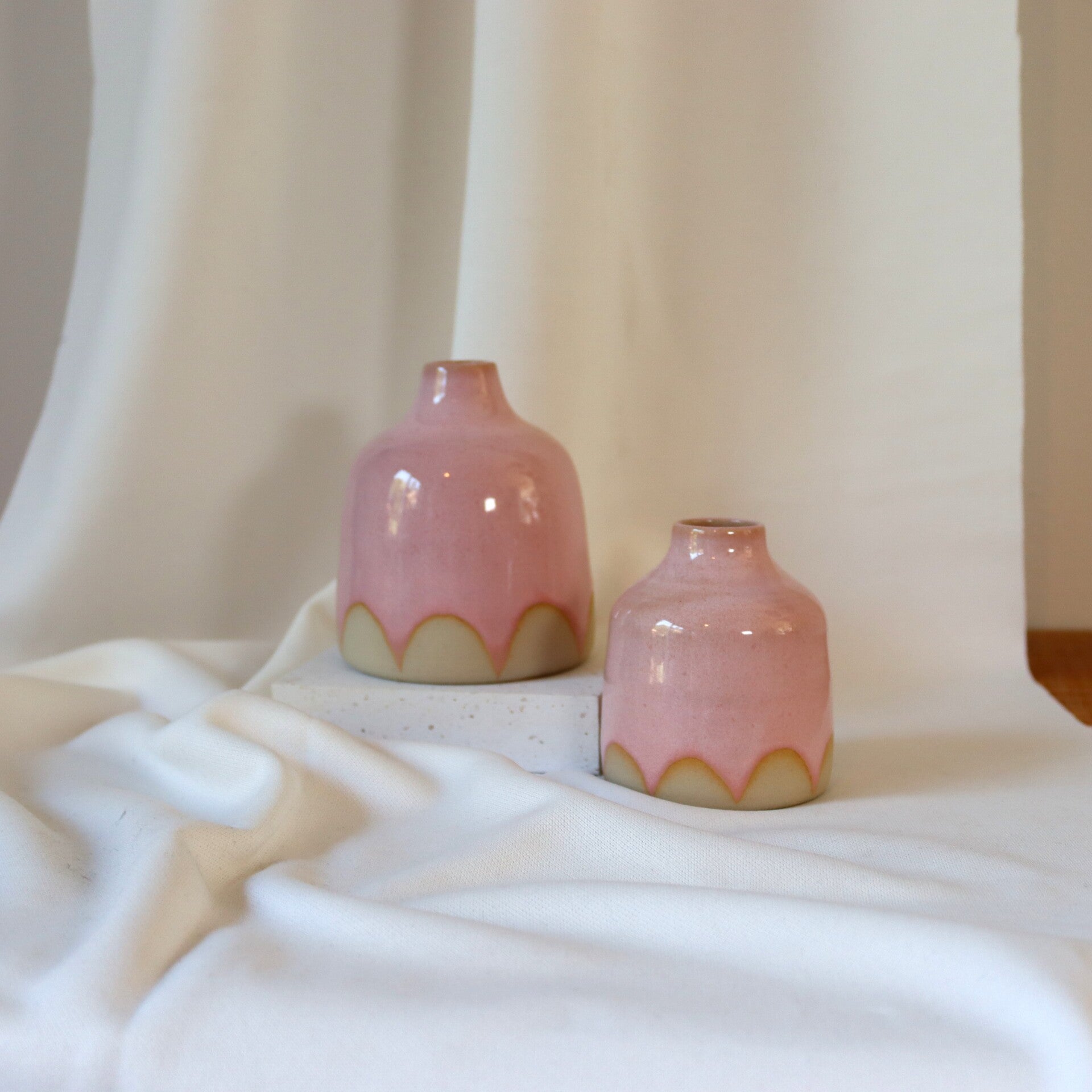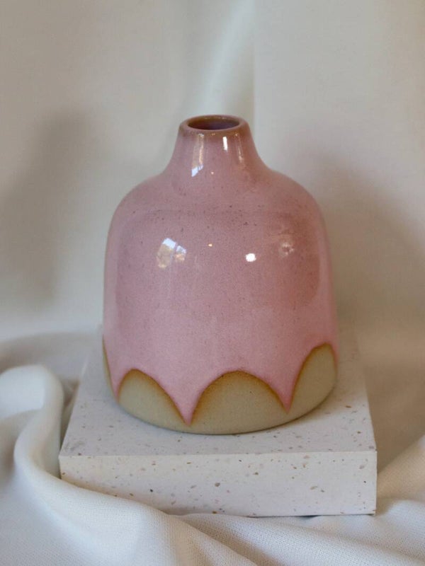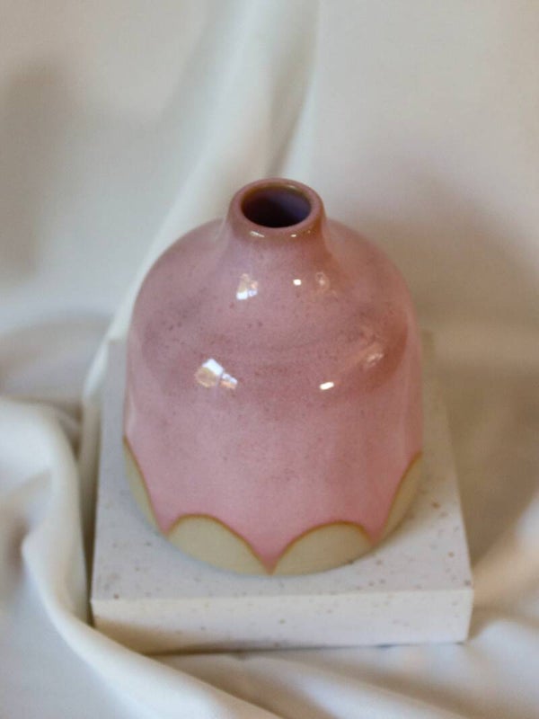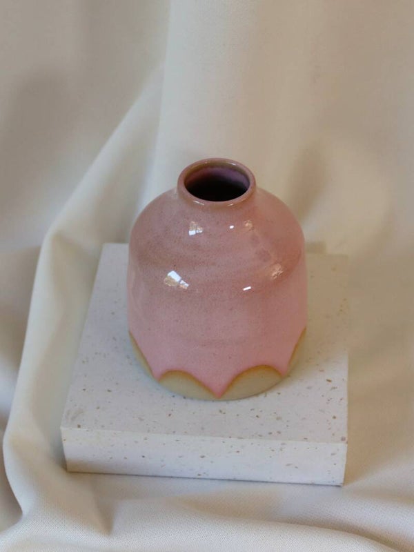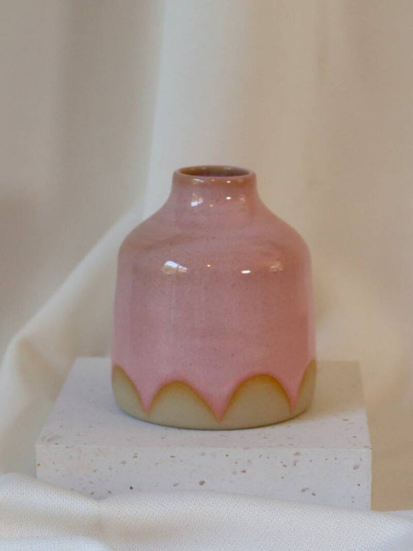 Dit lieve vaasje heeft een speelse onderkant en een zachte roze kleur. Leuk alleen of in een setje. Beschikbaar in mini en midi.