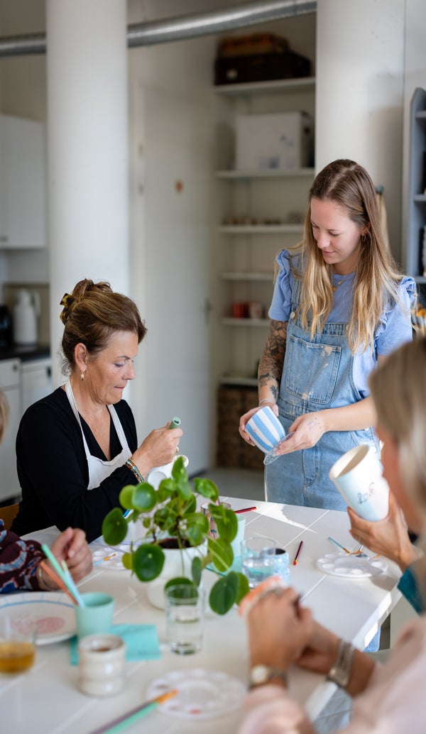 Je kunt een groepsworkshop keramiek schilderen boeken vanaf 20 personen. Ben je met minder dan 20? Dan kun je terecht bij onze workshops voor losse deelnemers