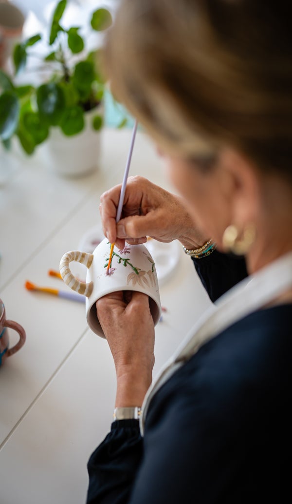 Je gaat creatief aan de slag met het beschilderen van keramiek zoals mokken, borden, schalen of vazen. Er is ruime keuze en meer dan 30 kleuren glazuur, die je naar hartenlust kunt mengen. De workshop duurt ongeveer 2,5 uur en biedt genoeg tijd om één of meerdere keramiekstukken te schilderen.